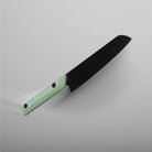 Crafted from our proprietary blend of steel TITANOX™, the TZ-05 Santoku Knife features a well-balanced design and razor-sharp edge that enhances its cutting performance. The interchangeable handles are crafted from G10, a compressed and stabilized fabric designed to repel liquids and oils making it virtually stain-proof. The obtuse angles carved into the handle help guide your grip into the perfect position for safe controlled cutting.